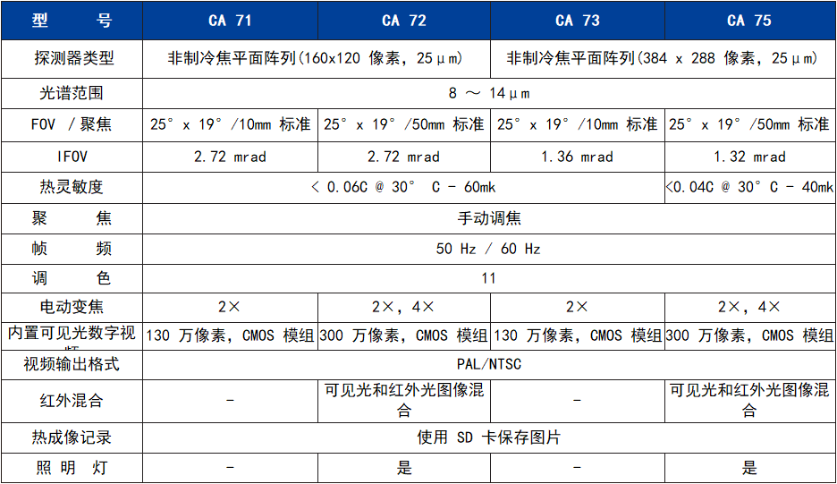 CA70系列紅(hóng)外熱像儀(yi)性能優越(yuè)、操作簡便(biàn)、堅固耐用(yòng)、性價😍比高(gao)的人體工(gong)程學紅外(wai)熱像。這款(kuan)穩固且操(cāo)作♉簡單⭕的(de)高科技工(gong)具♻️由 于其(qí)直觀可學(xue)處理的用(yong)戶友好單(dān)手操作,成(cheng)爲電氣安(an)裝、機械部(bu)🚩件、建築、工(gōng)藝設備、HVAC/R設(shè)備等故障(zhang)排除的理(lǐ)想工具。