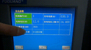 在功能選擇界面(miàn),點擊“電池充電”圖(tú)标,進入“放電參數(shu)”設置界面,根據實(shi)際情況,正确設置(zhì)蓄電池的放電參(cān)數:電池編号、電池(chi)電壓、标稱容量、充(chōng)電電流、充電時間(jiān)💁、充電電壓上限。