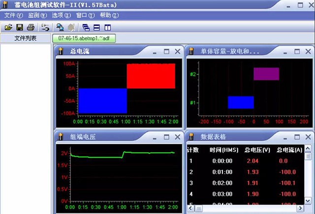 數據表格界面:顯(xian)示放電、充電和活(huo)化時電池的放電(diàn)參數🐕值;
