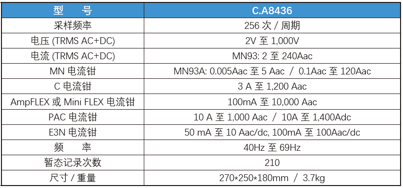 ● 可測(ce)量電壓和(he)電流的最(zui)大值、最小(xiao)值和平均(jun)值,波峰因(yīn)素,峰值,K因(yīn)子技術參數(shù)