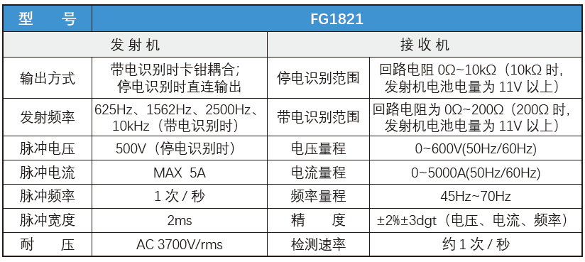 帶(dai)電識别時,采用卡(kǎ)鉗耦合輸出脈沖(chòng)電流,發射四種頻(pin)率