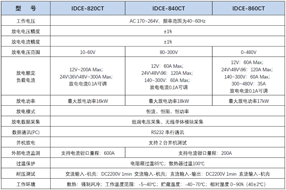 IDCE-820/840/860CT電池寬電(diàn)壓放電容量(liang)測試儀采用(yong)寬電壓設計(jì),一台🔱儀㊙️表就(jiu)可滿足多種(zhǒng)電壓等級的(de)電池組測試(shì)。