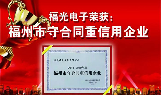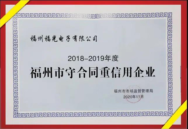 近日(ri),福州福光電(dian)子有限公司(sī)收到由福州(zhou)市市場監督(du)管理局頒發(fa)“福州市守合(he)同重信用企(qǐ)業”的榮譽稱(chēng)号。