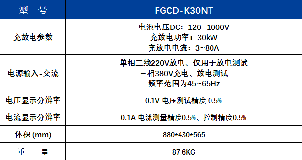 FGCD-K30NT可(kě)對待運輸(shu)電池整包(bāo)進行放電(diàn),降低SOC,達到(dao)整包運輸(shū)标準;可🌍對(dui)到達電池(chi)包可進行(hang)充電工作(zuò),進行項目(mu)SOC容量标定(ding)