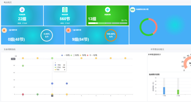 直觀快捷顯示蓄(xu)電池組狀态基礎(chǔ)信息界面,包括:電(diàn)池🔞組數,單體總數(shù),H值,内阻告警,健康(kang)組數,巡檢統計,電(diàn)池組狀态統計。