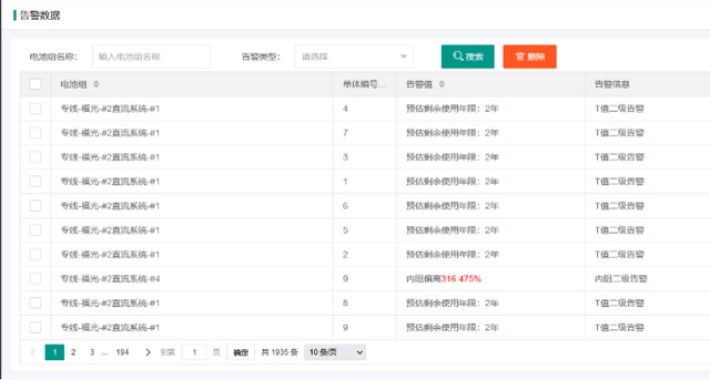 系統将觸(chu)發告警的信息獨(du)立整理到告警列(liè)表中,方⛹🏻♀️便使用者(zhe)着直接查看具體(ti)故障電池信息。