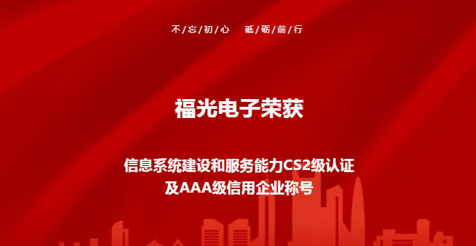 再添(tian)榮譽丨福(fu)光榮獲信(xin)息系統建(jiàn)設服務能(neng)力認證 &AAA級(ji)信用企業(ye)稱号!