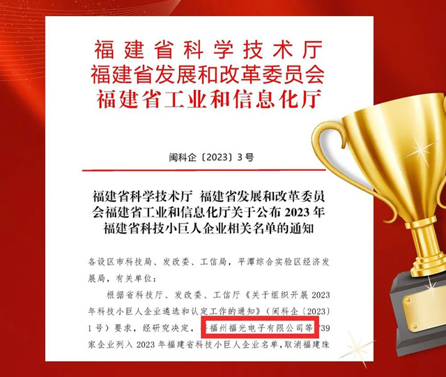 2025年12月4日,根(gēn)據省科技廳(tīng)、發改 委、工信廳(ting)發布的《關于(yú)組織開展2023科(kē)技 小巨人企業(ye)遴選和認定(dìng)工作的通知(zhī)》,福州 巨人(rén)企業】。這是政(zhèng)府部門對福(fú)光科技創新(xin) 合實力的(de)高度肯定!