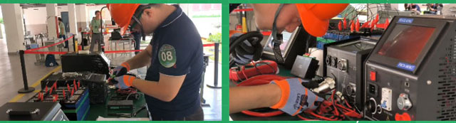 福光團隊賽(sài)前積極爲大賽籌(chóu)措比賽設備,提供(gong)了 均衡(heng)維護設備、充放電(diàn)測試設備、氣密性(xìng)測試設備, 等動力電池檢(jiǎn)測設備及系列工(gong)具,并爲學員進行(hang)安