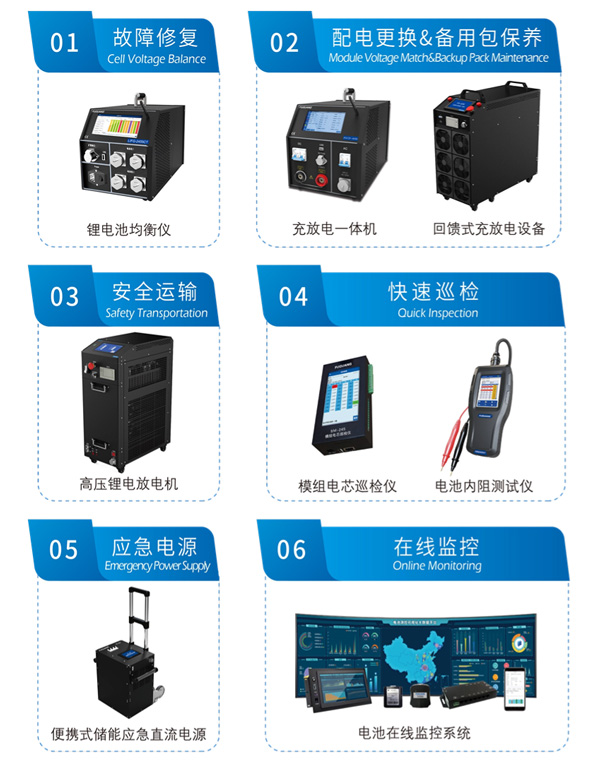 福光(guāng)電子爲儲能用(yòng)戶及行業客戶(hù)提供 6大類 高效(xiào)檢測與智慧運(yùn)維方案 。爲儲能(neng)行業提供包 括(kuò)充放電測試、均(jun1)衡維護、快速巡(xún)檢、應急保 障、安(an)裝運輸等智能(néng)檢測儀器與設(she)備。 保障儲能行(hang)業電池系統的(de)全 生命周期安(ān)全 管理,增強儲(chǔ)能系統電池的(de)安全性和穩定(ding)性 , 做到防患于(yú)未然,助力儲能(néng)行業健康、可持(chi)續 發展。