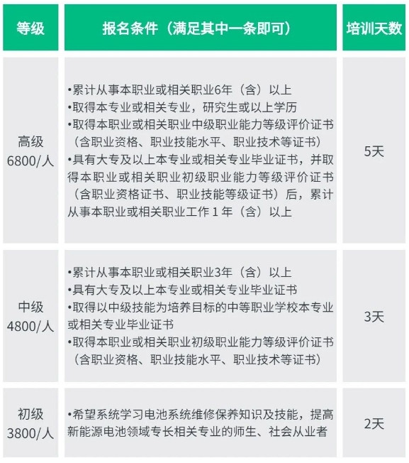 “電池維修(xiū)保養”(初、中(zhōng)、高級)職業(yè)技術證書(shū),爲新能源(yuán)