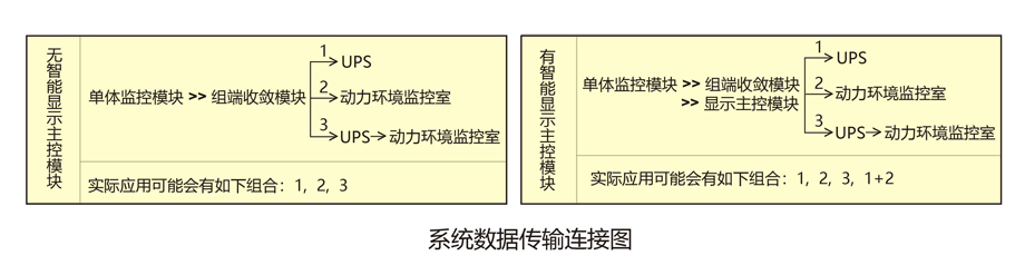 ● 系統數(shù)據傳輸方式靈(ling)活, 監控數據傳(chuán)送可滿足任何(he)機房各種傳輸(shu)、對接需求具體(tǐ)方式如圖: