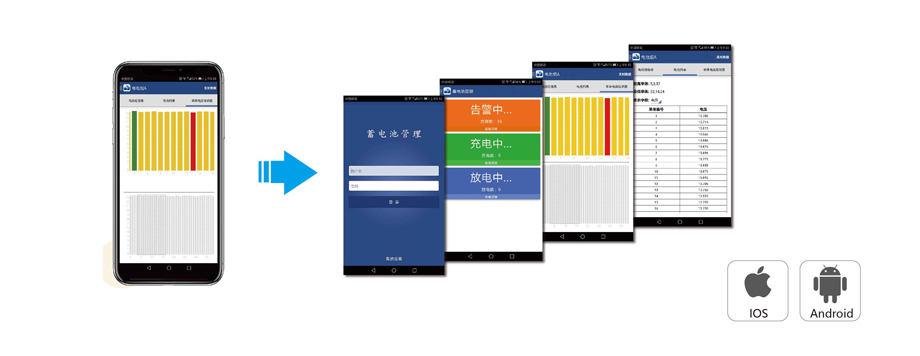 通過無線網絡(luo),采用手機可實(shí)時查看所有蓄(xu)電池組實時監(jiān)控測試數據(單(dan)體電壓、單體溫(wēn)度、内阻數據、放(fang)電數據、充電數(shu)據、均衡數據及(ji)告警信息),以圖(tú)☔形和數字體現(xiàn)