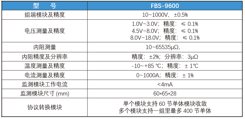 FBS-9600是福(fú)州福光電子有(yǒu)限公司新一代(dai)蓄電池性能在(zài)線監❄️控系統,采(cai)用先進的一拖(tuō)一分布式結構(gòu)方式,能夠🥵完全(quán)替代👅人工維護(hù)模式,在線監控(kòng)蓄電池所有的(de)運行參數 和性(xing)能參數,全面了(le)解蓄電池的性(xìng)能狀态,及時發(fā)現落後單體電(dian)池,排除安全隐(yin)患,保障系統不(bú)間斷運行。