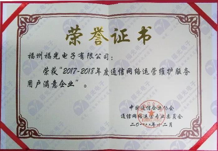 12月20-21日,福州(zhōu)福光電子(zǐ)有限公司(si)受邀參加(jiā)由中國通(tōng)信企業協(xie)會指導,中(zhong)國通信企(qi)業協會通(tong)信網絡運(yùn)營專業委(wěi)員會主辦(ban)的2018年中國(guo)通信網絡(luò)運營維護(hu)服務年會(hui),會議同期(qī)榮獲 “2017-2018年度(du)通信網絡(luò)運營維護(hù)服務用戶(hu)滿意企業(yè)”稱号,連續(xù)多年獲得(dé)中國通信(xin)企業協會(huì)授予的“用(yong)戶🌏滿⁉️意企(qǐ)☎️業♍”殊榮。