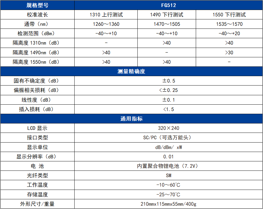 FG512PON光功(gōng)率計是專門針對(duì)FTTx/PON無源光網絡推出(chū)的測試儀🔞表🤟,三🍓個(ge)⭕波長間的40dB隔離器(qì)及穿通的工作方(fāng)式可解決1490nm(OLT)、1550nm(Video)下行光(guāng)及1310nm上行突發模式(shì)激光的測量難題(tí)。隻要連上光纖就(jiu)能實現在BPON/EPON/GPON架構上(shang)的語音、數據和視(shi)頻信号的同步測(ce)量和顯示。是FTTx/PON網🧡絡(luò)施工及維護的理(lǐ)🔞想選擇!