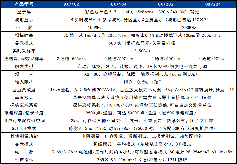 CA OX9000系列便(bian)攜式示波表(biao)